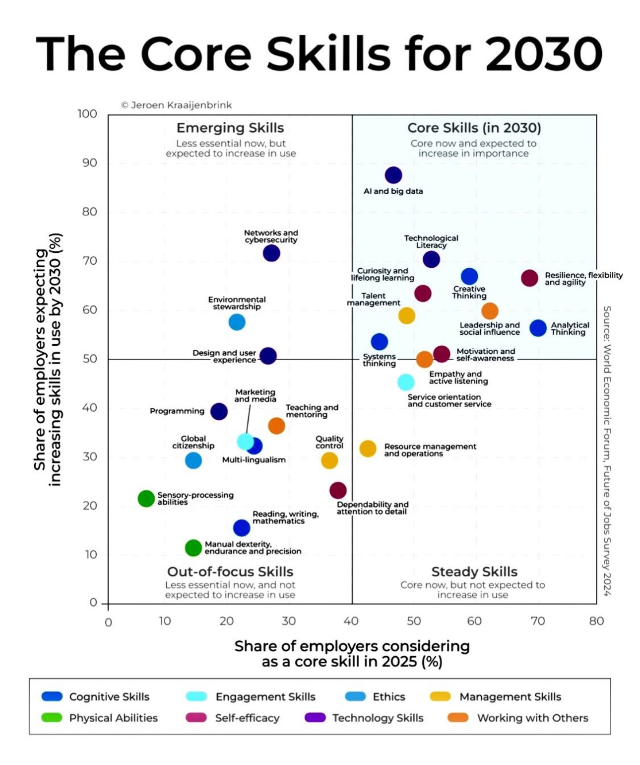 A recent study by the World Economic Forum outlines a powerful shift in the core skills expected by 2030. This isn’t just a list of buzzwords — it’s a roadmap that shows us where the world of work, learning, and leadership is heading. And it’s both exciting and urgent.